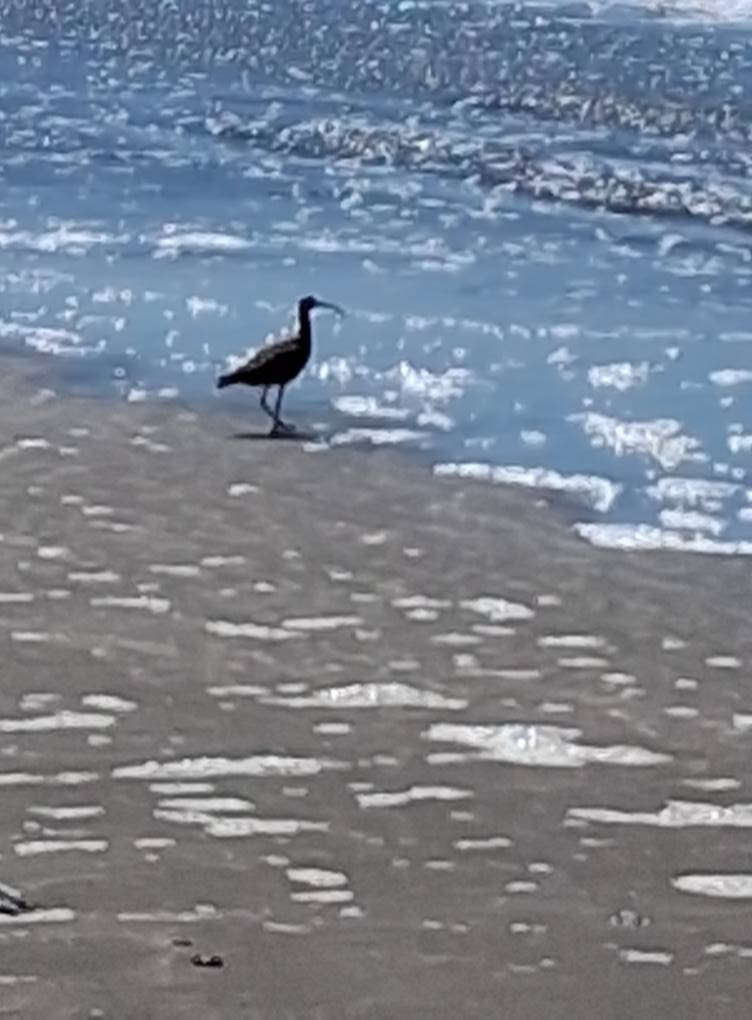 I took this picture yesterday in Cayucos, California, at the very edge of the Pacific Ocean. A took a bunch of photos there and this was the poorest in terms of sharpness and quality. The sandpiper and I had a bit of a dance, just how many steps I could take in his/her direction before a scampering away. Focus a tad jumpy.